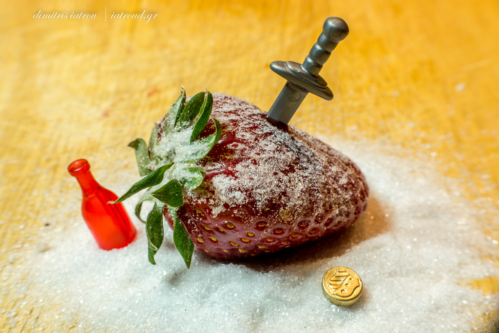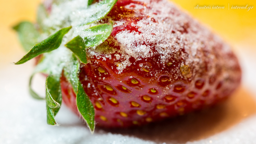 Yesterday I asked my wife to buy me some strawberries. I love the red color combined with the tiny yellow seeds of them. We use to eat them as they are or with sugar. Sometimes, during the hot summer, we chop them in a bowl, adding some alcohol (usually cognac) and sugar and put them in the fridge to get chill.